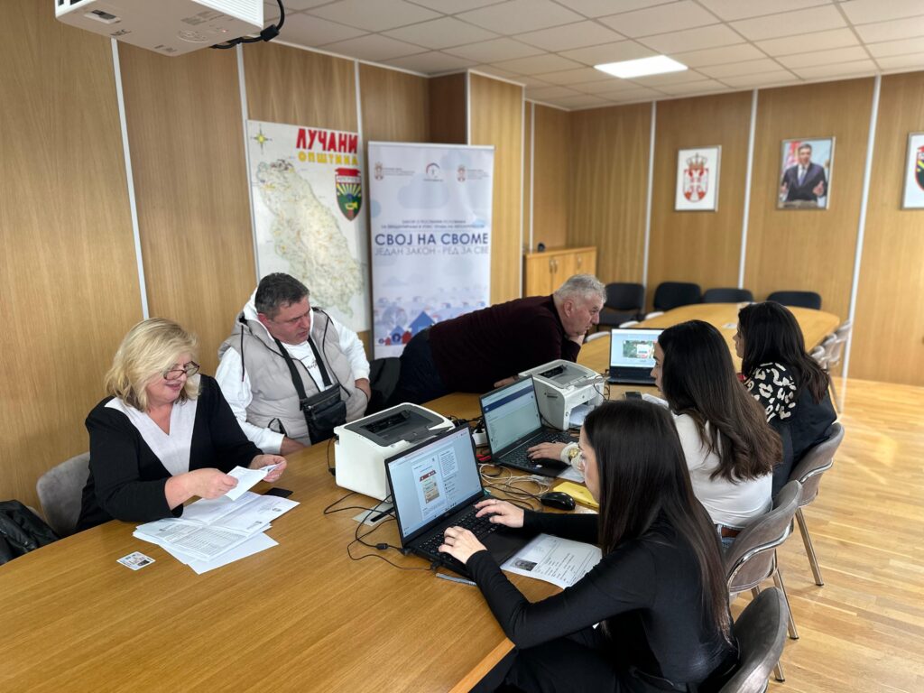Ministarka građevinarstva, saobraćaja i infrastrukture Aleksandra Sofronijević posetila je u opštini Lučani šaltere za upis prava svojine nad objektima, predviđene zakonom “Svoj na svome”.